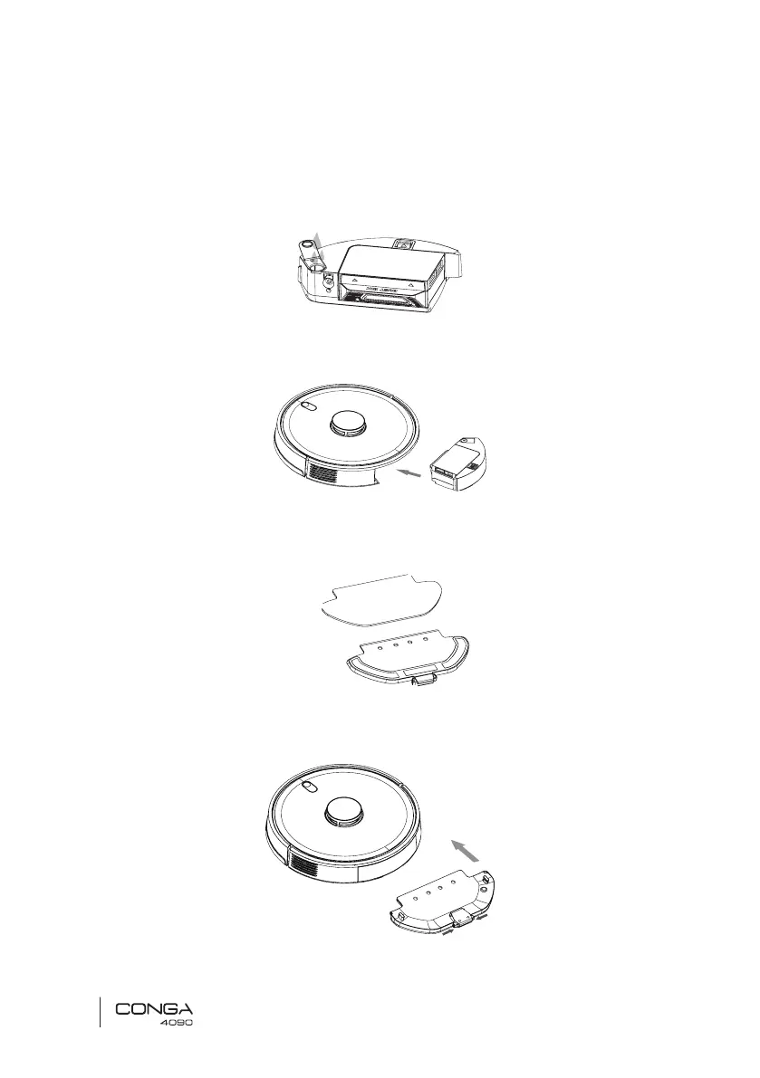 2. Instale o depósito no robot seguindo a direção indicada na imagem. Certique-se de que