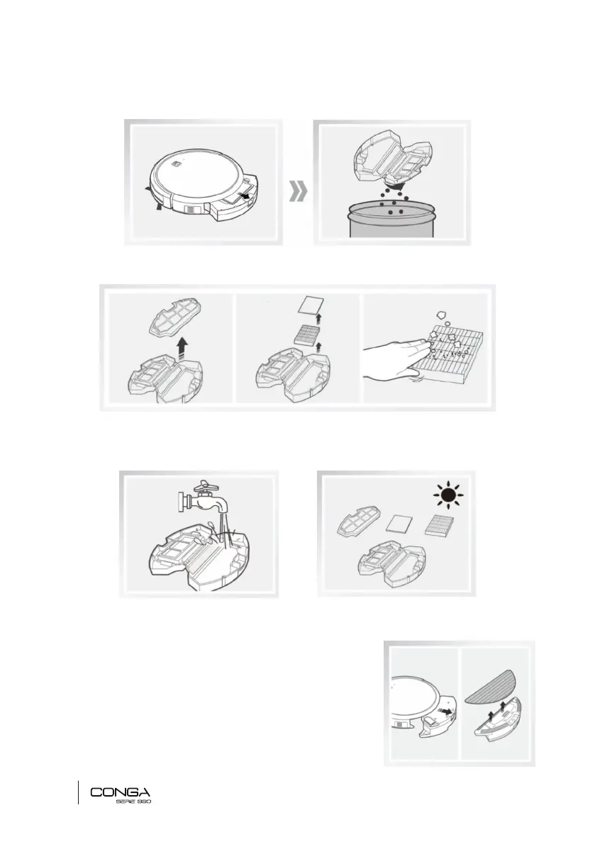 4. Air the dust tank and lters and make sure they are completely dry before placing them