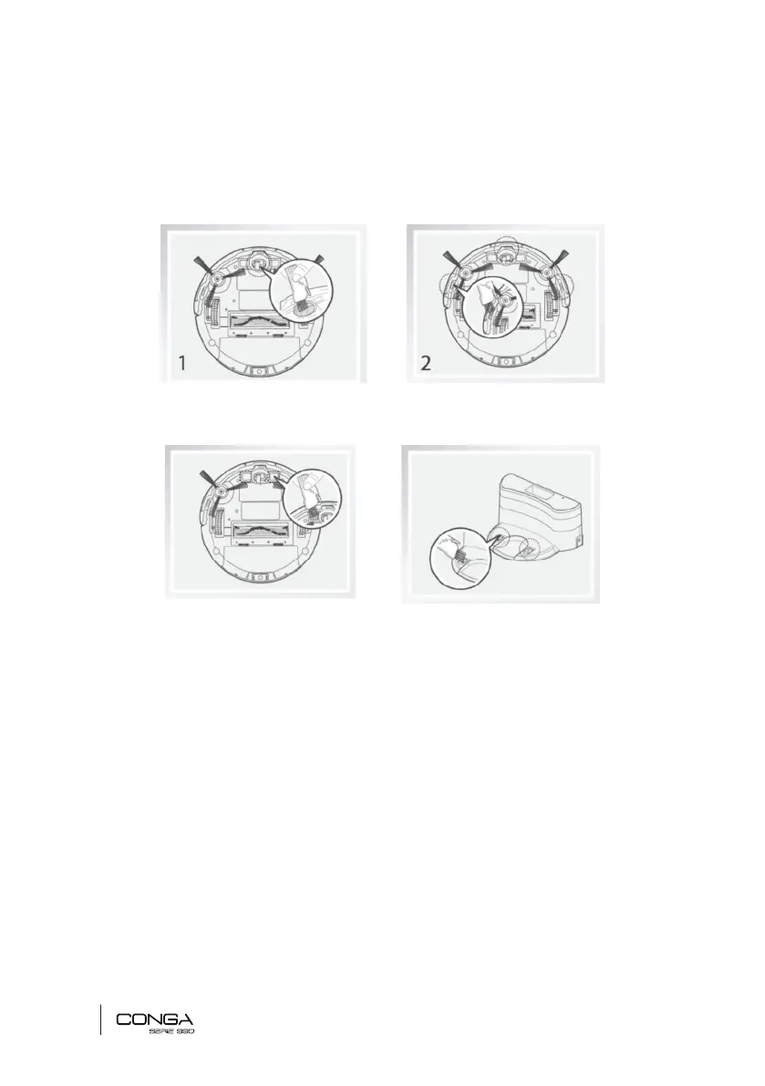 2. Allineare il cavo tra il robot e la batteria e in seguito estrarre la batteria.