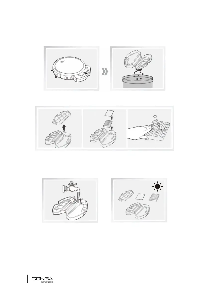 4. Areje o depósito de sujidade e os ltros, e certique-se de que estão completamente