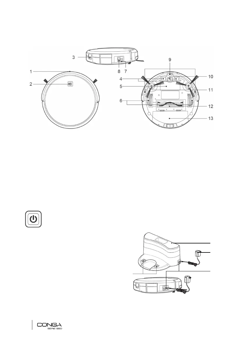 cecotec CONGA 990 Series - Parts and Components; Robot Main Body Components; Control Panel Overview; Charging Base Components