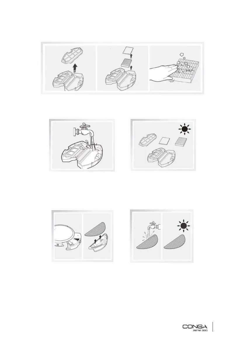 4. Laissez le réservoir de saleté et les ltres s’aérer puis assurez-vous qu’ils soient