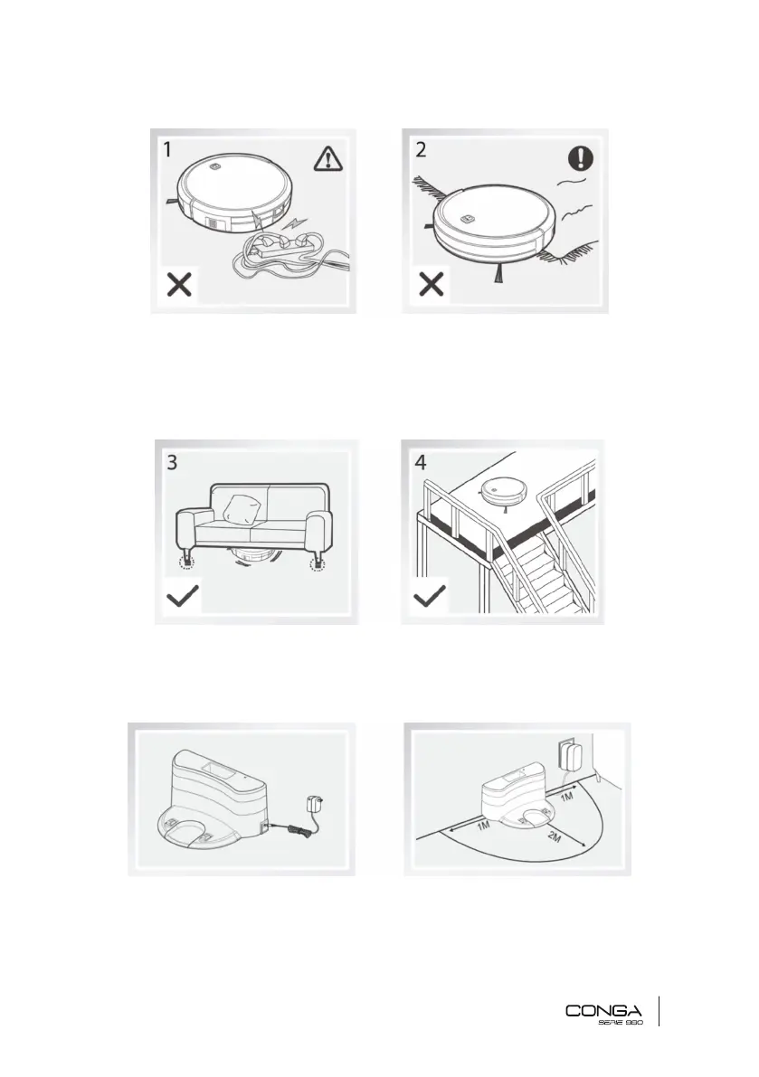 • Recolha as franjas dos tapetes antes de por o robot a funcionar.