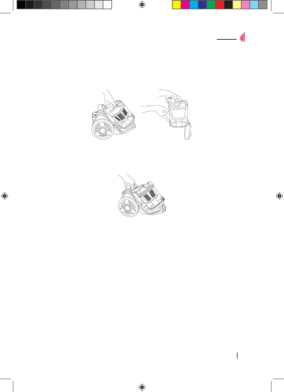 1. Press the release button on top of the dirt container and remove it from the main body of