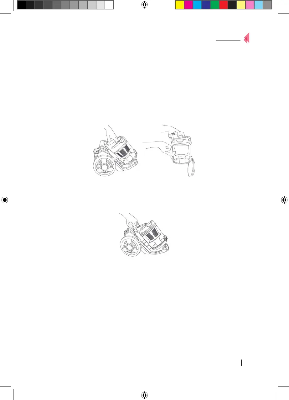 1. Pressione o botão de extração localizado na parte superior do depósito de sujidade para