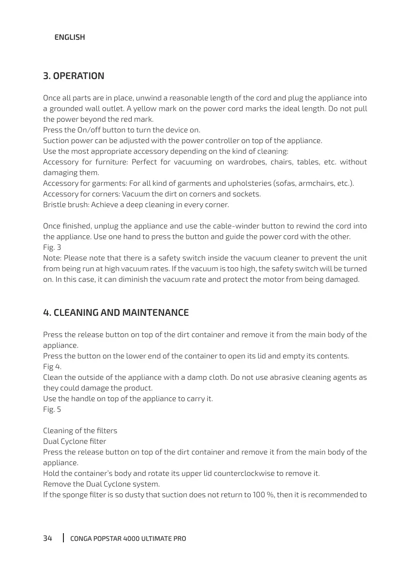 Once nished, unplug the appliance and use the cable-winder button to rewind the cord into