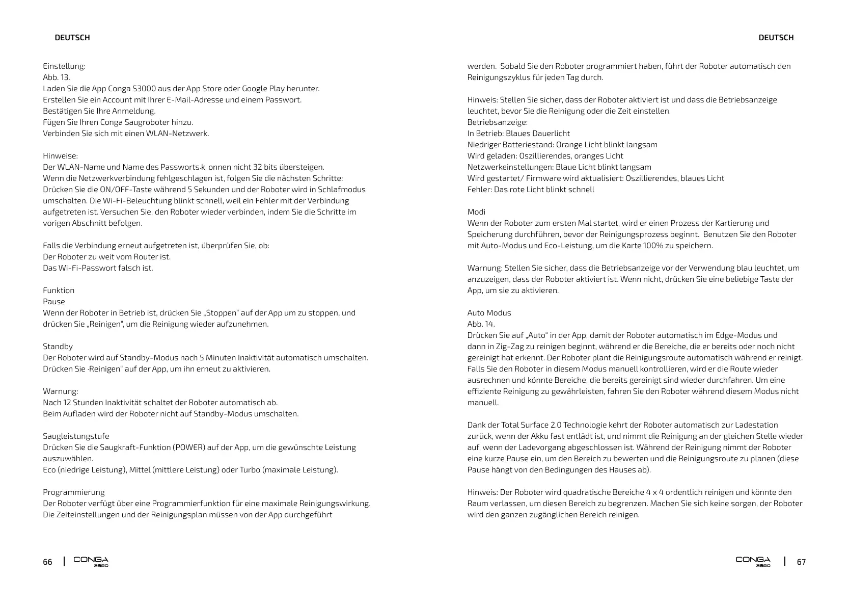 Der Roboter wird auf Standby-Modus nach 5 Minuten Inaktivität automatisch umschalten.