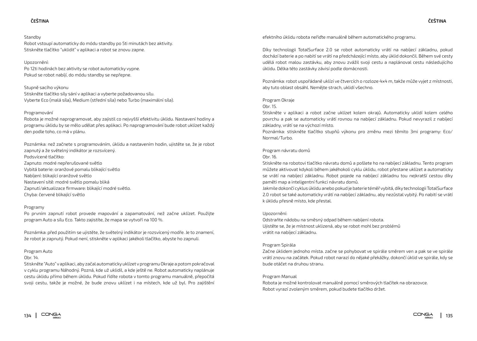 Robot vstoupí automaticky do módu standby po 5ti minutách bez aktivity.
