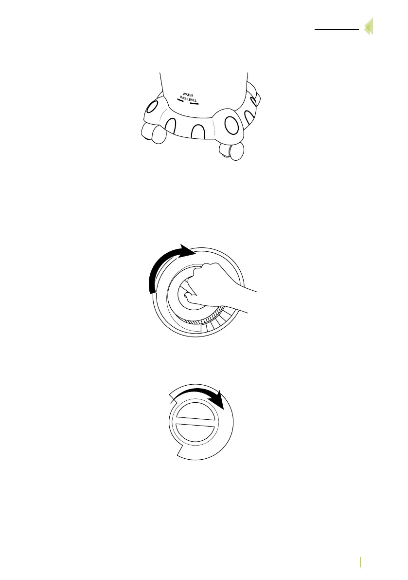 Virar o contador de tampa do tanque de água no sentido horário do relógio para acessar o ltro.