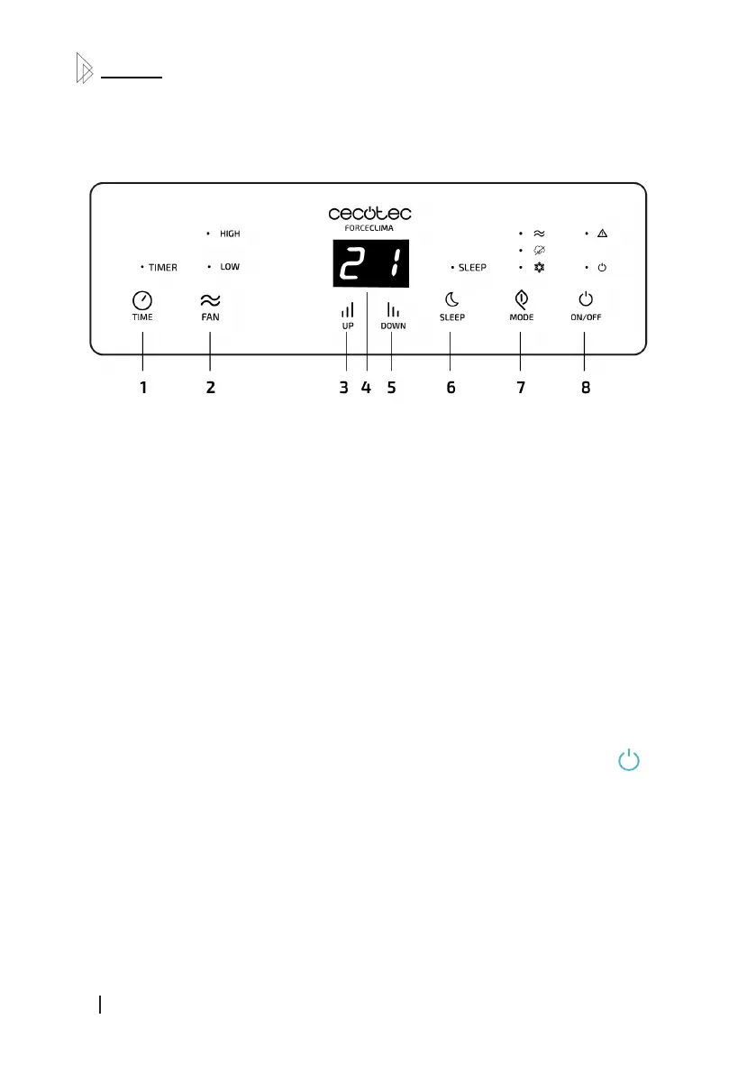 encenderlo, la temperatura predeterminada, que es de 22 °C, aparecerá en la pantalla (4).