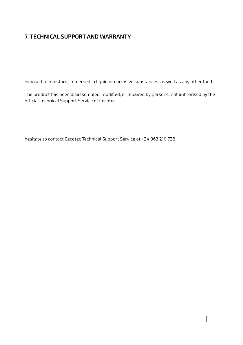 based on current legislation, except consumable parts. In the event of misuse, the warranty