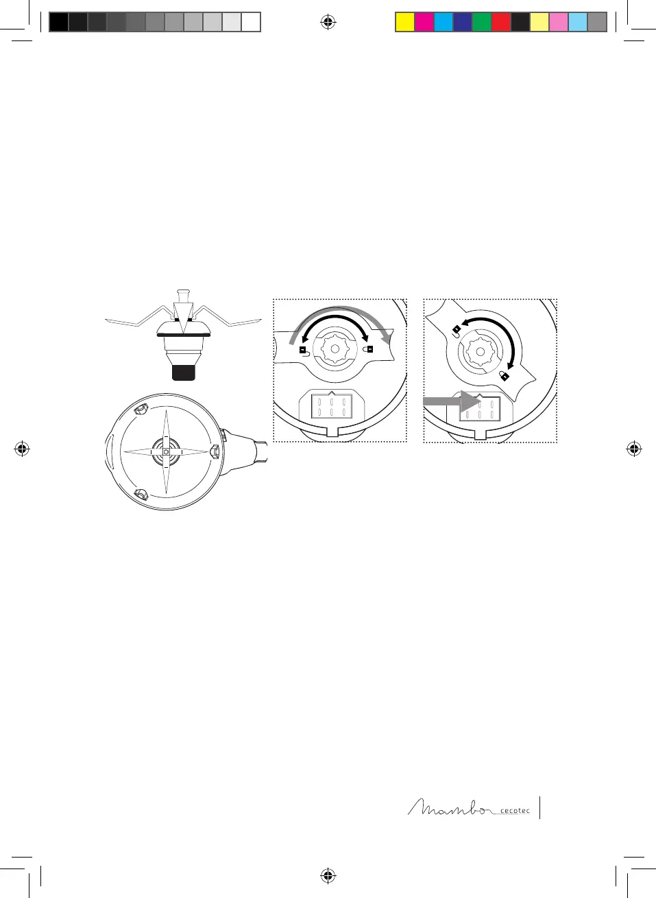 4. Per togliere il set delle lame dalla caraffa, girare il supporto di fissaggio in senso