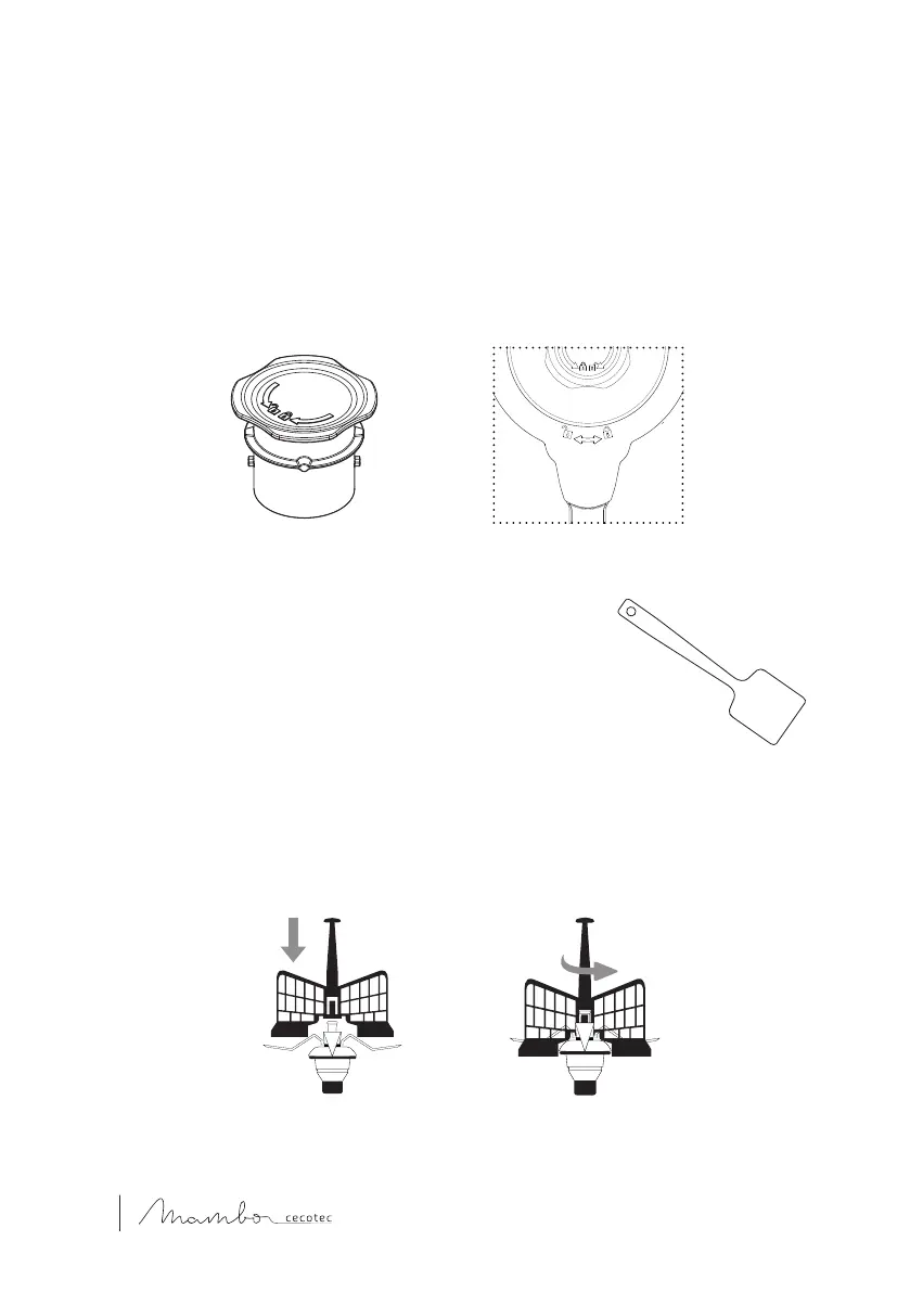 This accessory works installed on top of the blades unit, this way it helps mixing food and is