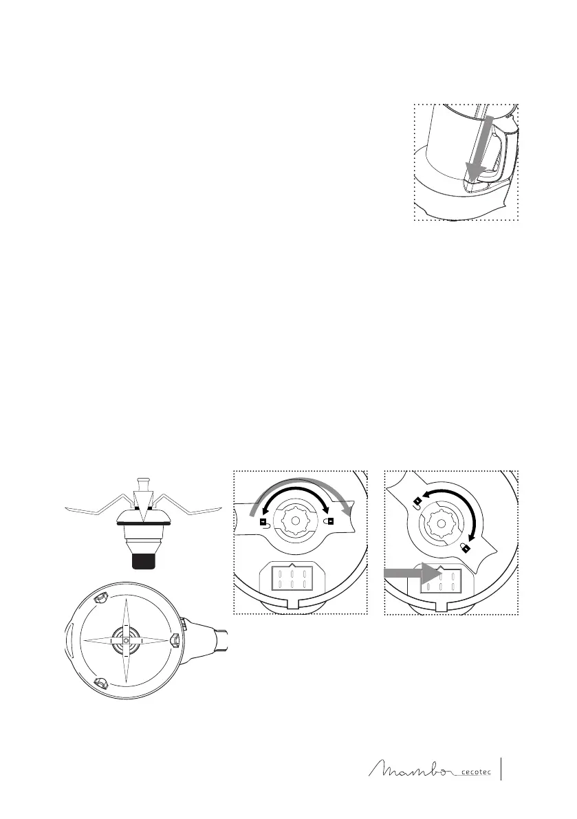 agujas del reloj para fijar el conjunto de cuchillas a la jarra.