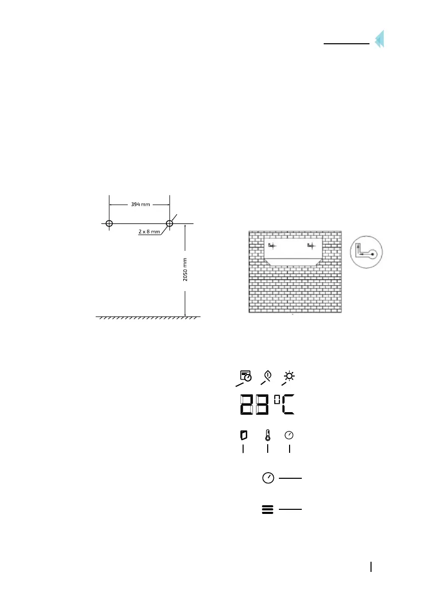 o dispositivo contra a parede e apoie com cuidado sobre os parafusos. Deslize o aparelho