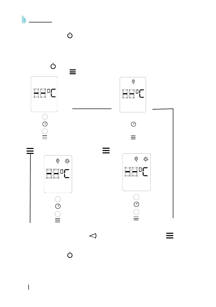 4. Pressione o botão de forma repetida até selecionar o modo de funcionamento