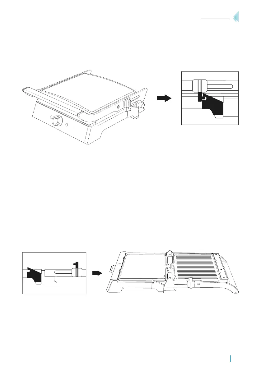 lado direito da dobradiça. Levante a placa de aquecimento até que repousa na bancada superior.
