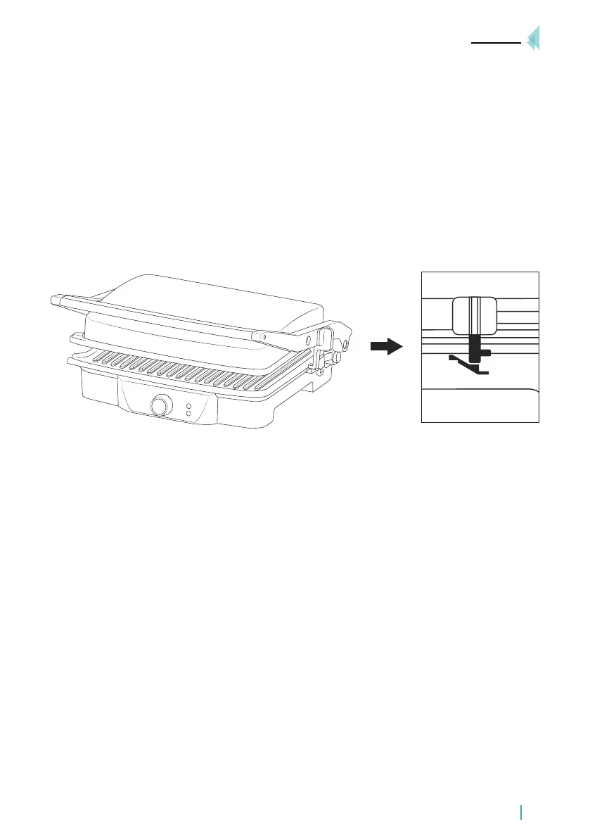 · Schließen Sie den Deckel des Grills und lassen das Gerät halb verriegelt ohne es zusammen