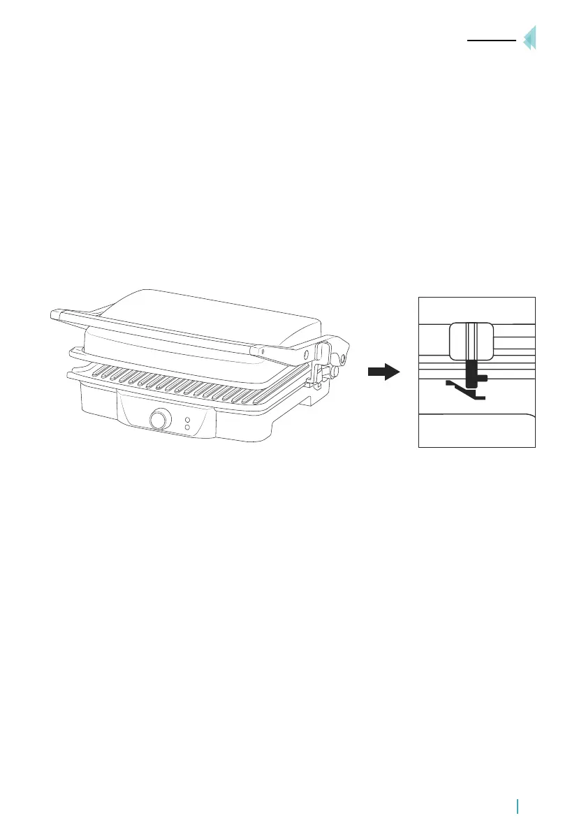 · Quando il cibo è pronto, usare il manico per aprire il grill. Togliere il cibo con l’aiuto di una spatola