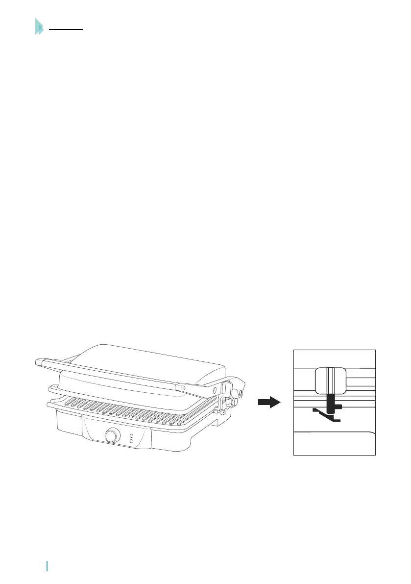 · Cuando la comida esté lista, use el asa para abrir el grill. Retire la comida con la ayuda de una