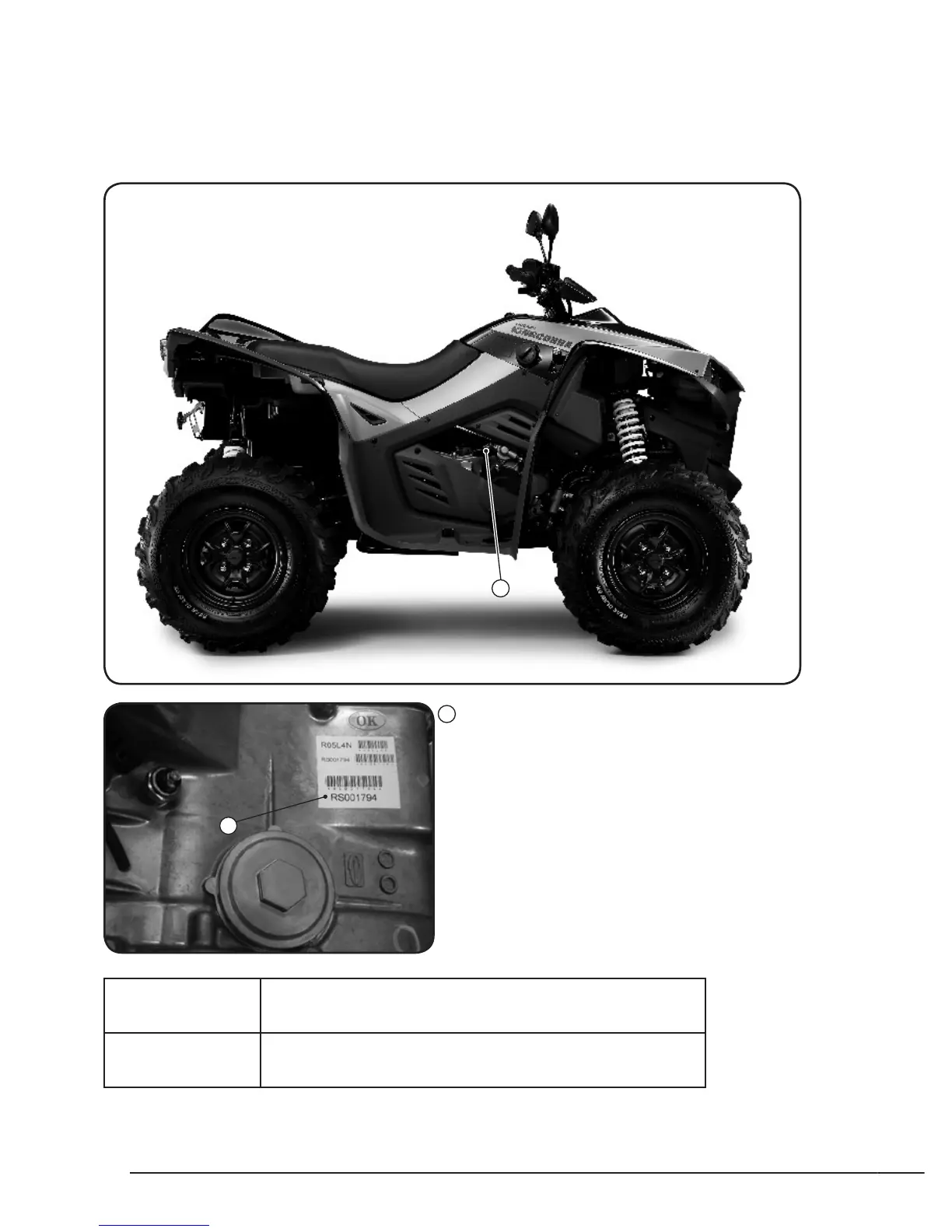 The engine serial number (2) is stamped on the upper-right of the engine crank case.