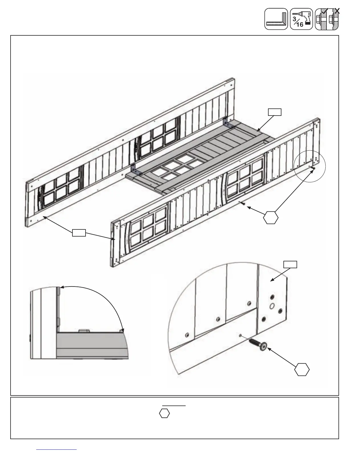 G:Pre-drillwitha3/16”drillbit,thenfastenthe(030)NarrowWindowPanelstothe(031)DoorWallWindow
