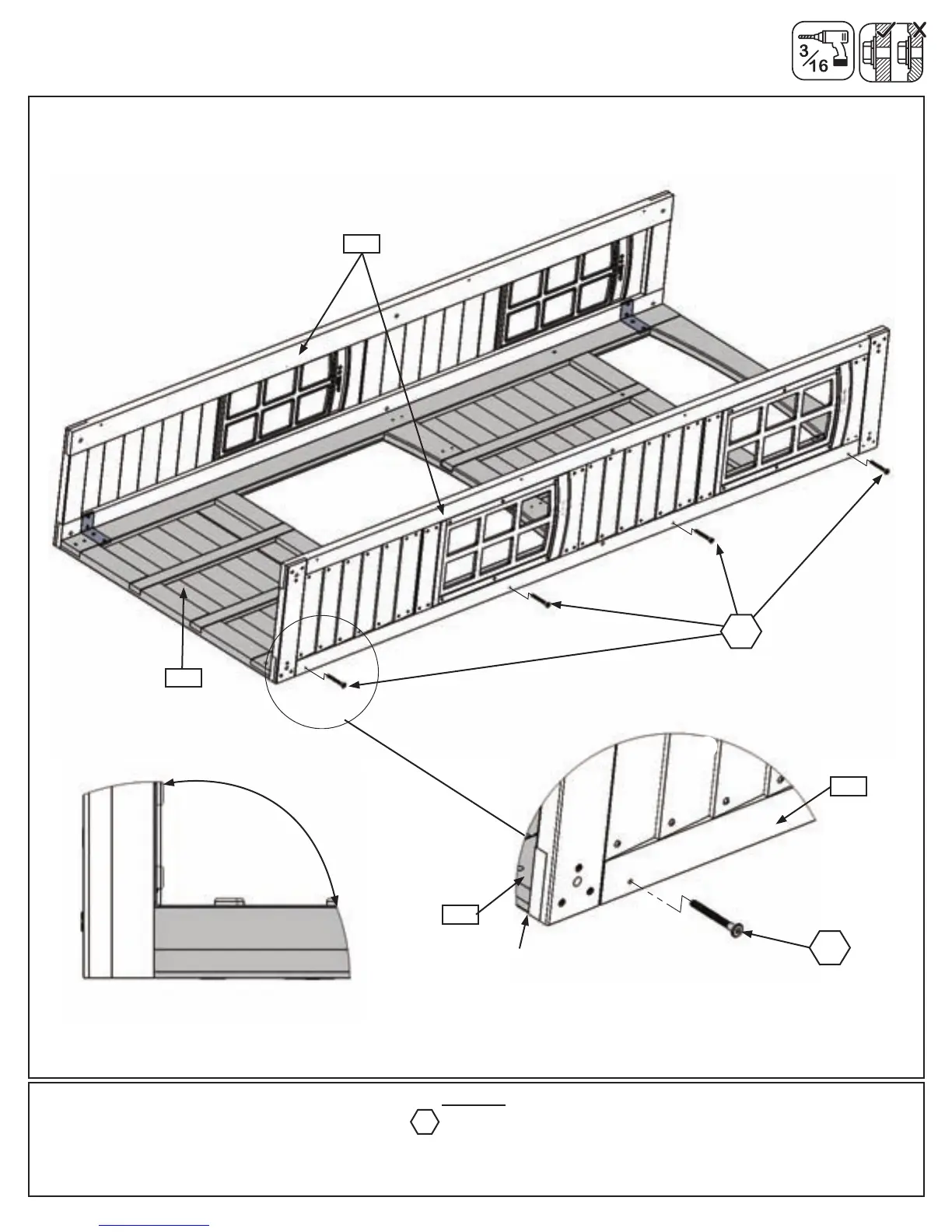 G:Pre-drillwitha3/16”drillbit,thenfastenthe(030)NarrowWindowPanelstothe(040)SWSidePanelwith4