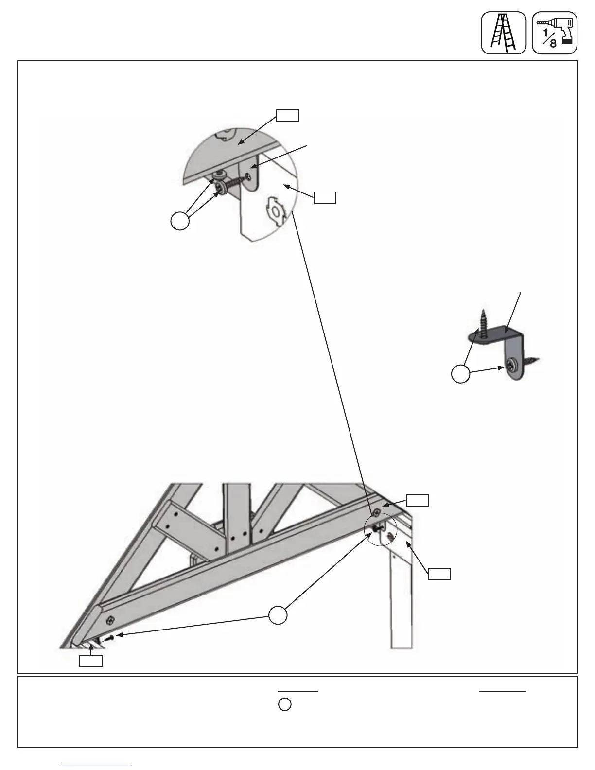 B:Frominsidetheassembly,pre-drillwitha1/8”drillbitthenattach(222)GableBottomto(042)LongWallTies
