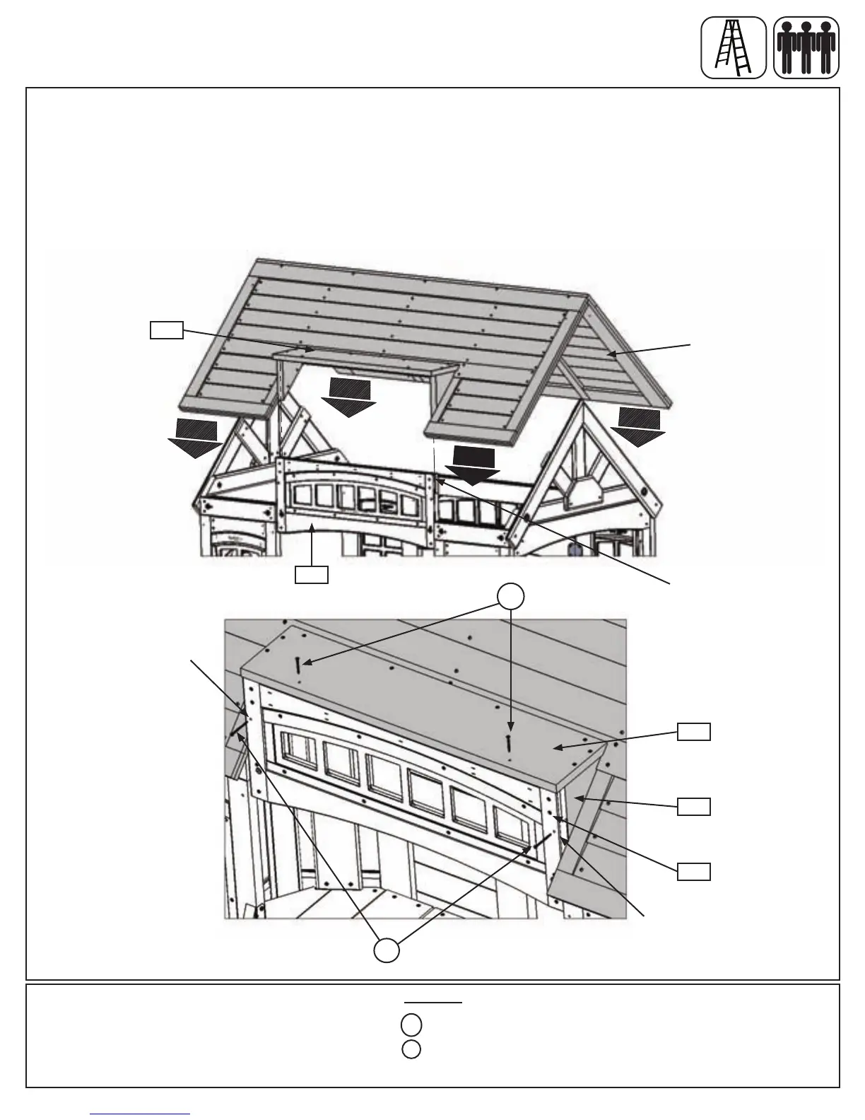 A:With2peopleonthegroundandatleast1personinthefort,lifttheRoofAssemblyupandovertheBack