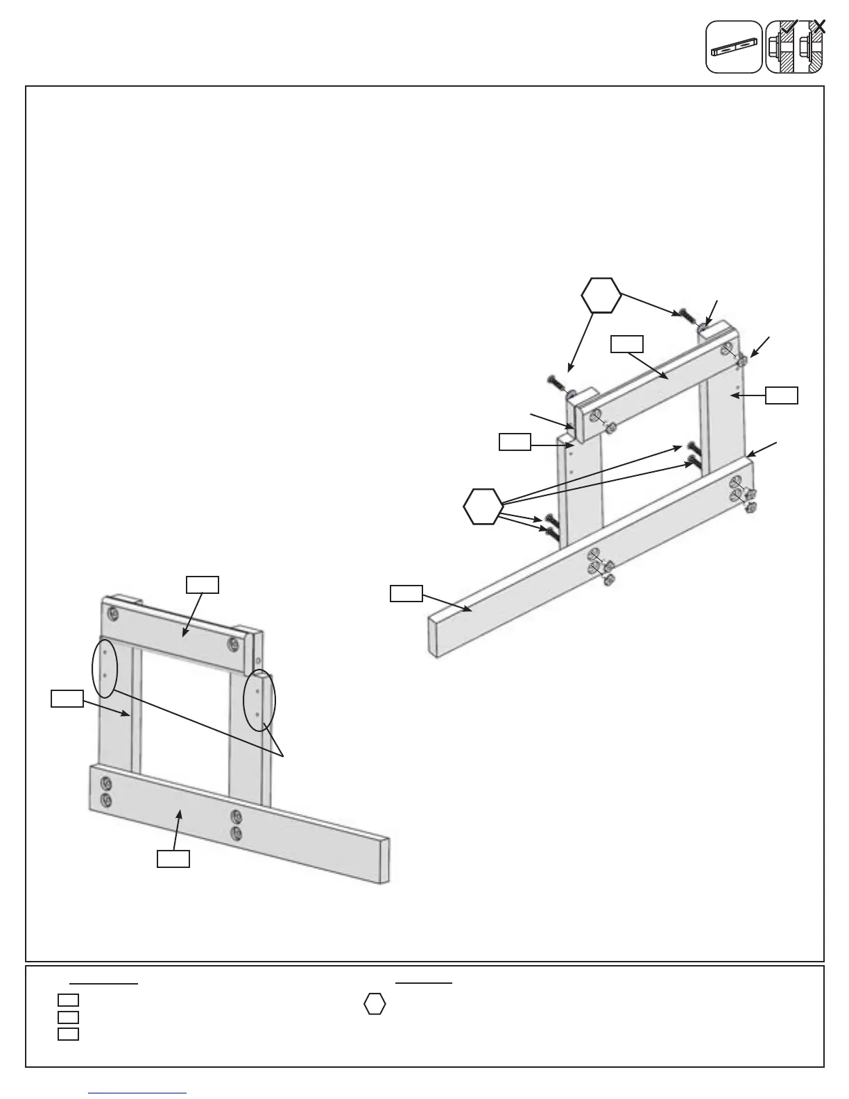 A: Loosely attach 1 (011) Box End to 2 (010) Box Legs using 2 (WB2) 5/16 x 1-3/8” Wafer Bolts (with at washer