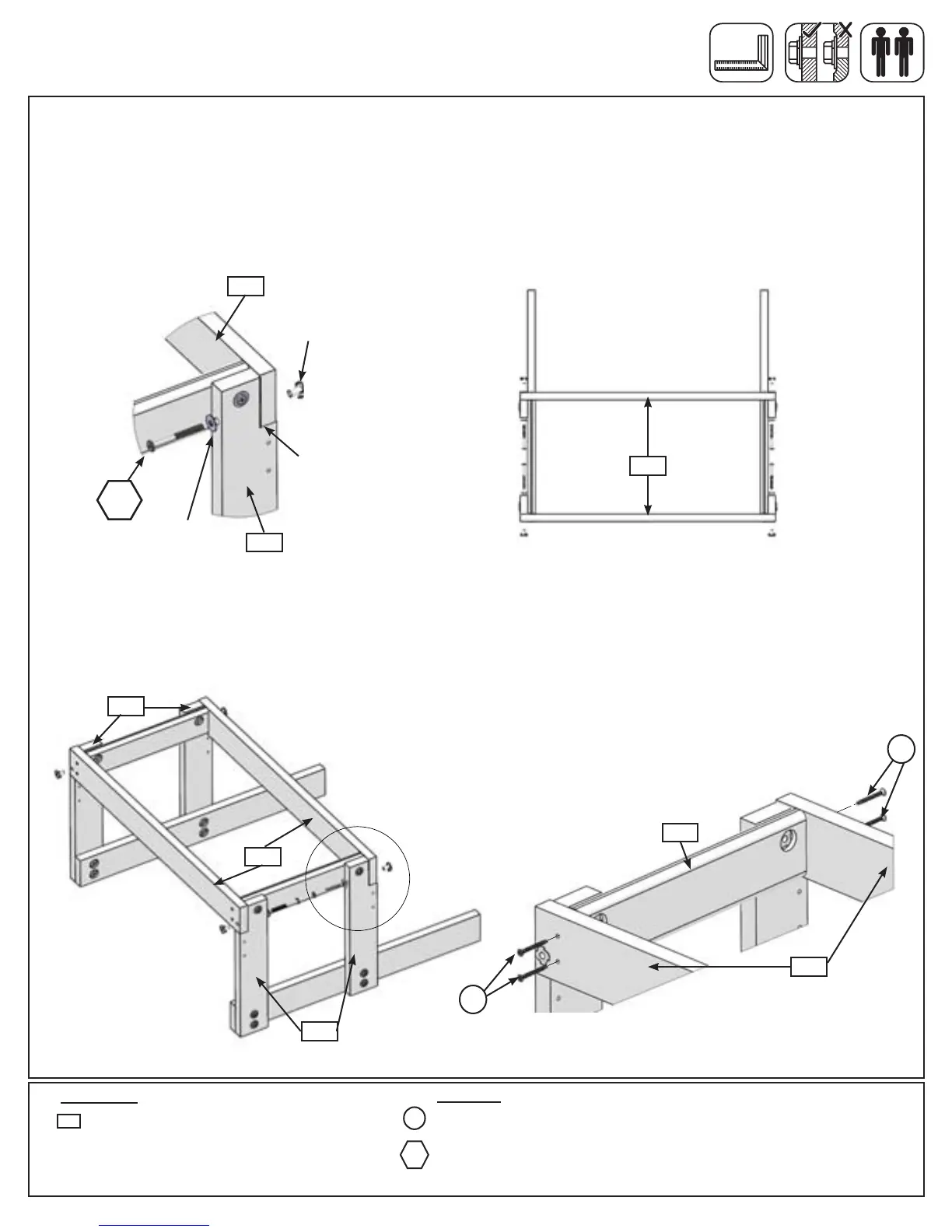 so they are ush to the outside edges of legs and loosely attach using 2 (WB7) 5/16 x 3” Wafer Bolts (with at