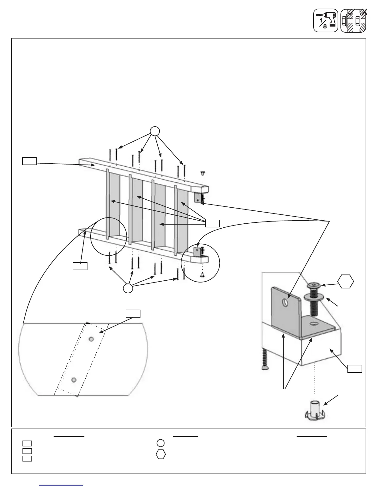 C: Pre-drill pilot holes with a 1/8” drill bit and attach Rails and Ladder T