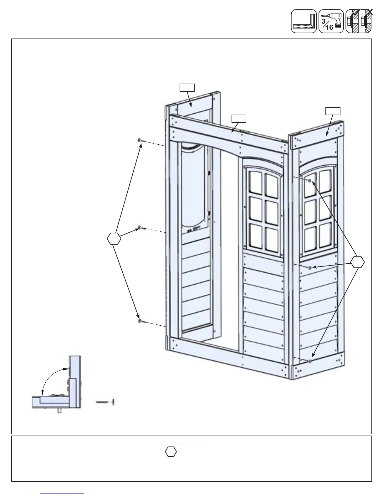 H: Pre-drill with a 3/16” drill bit, then fasten (042) Chalkwall Panel and (060) Narrow Half Window Panel to (061)