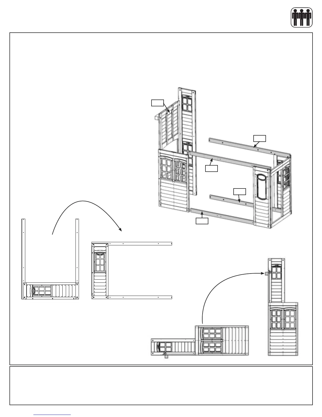 B: With at least two helpers lift the Swing Side Wall Assembly so it faces the Door Wall Assembly and slide both