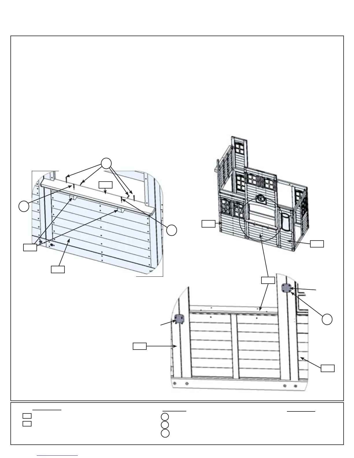 2 (S3) #8 x 2-1/2” Wood Screws and to (080) Table Top with 2 (S15) #8 x 1-3/4” Wood Screws as shown in g.