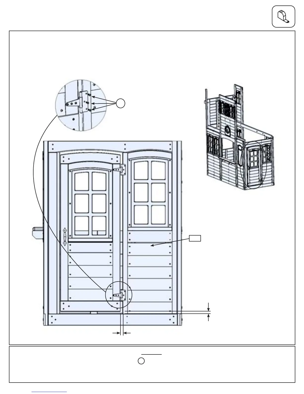(061) Door Wall Window Panel using 3 (S13) #6 x 5/8” Pan Screws per hinge. (g. 9.5, 9.6 and 9.7)