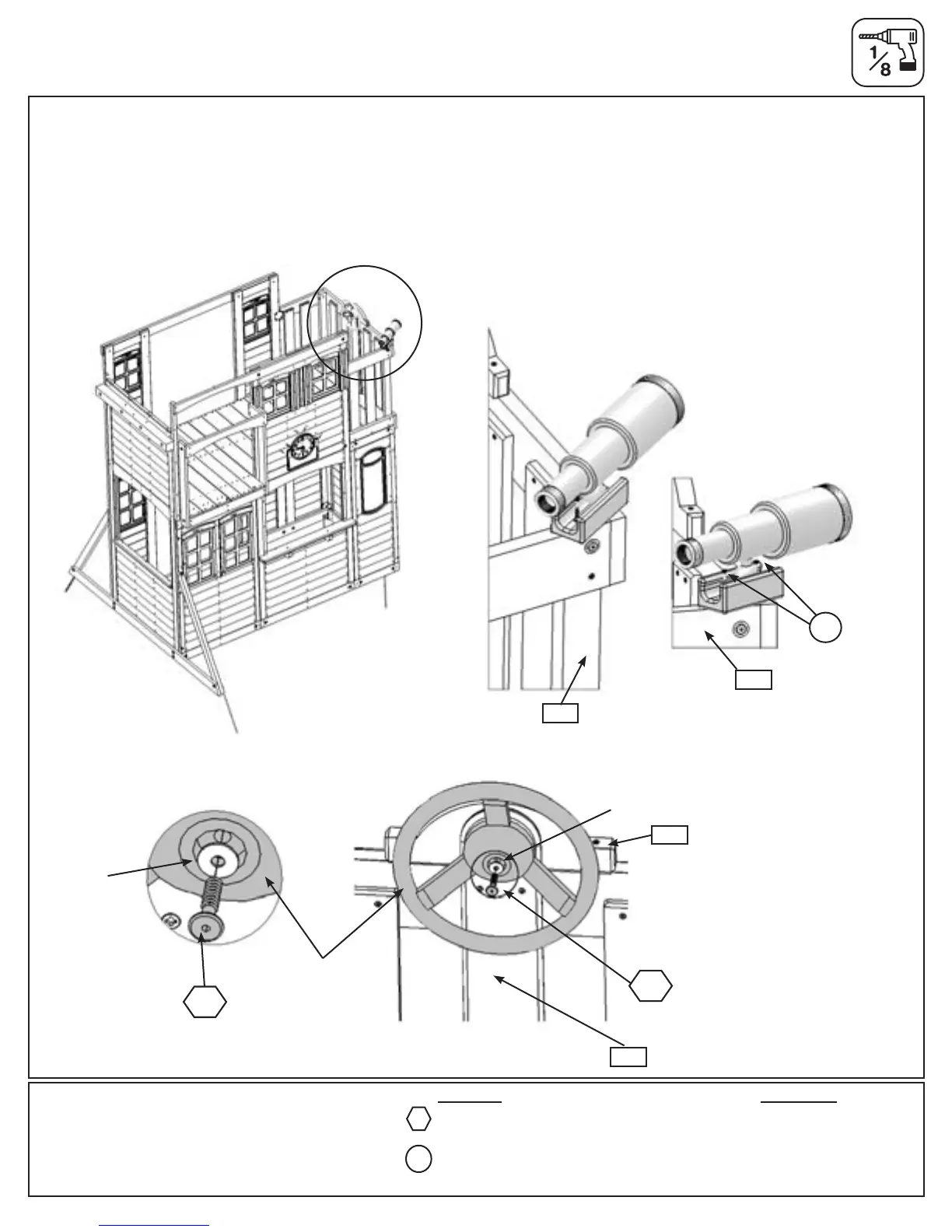 A: Pre-drill with a 1/8” drill bit, then attach Steering Wheel to (164) Centre Wall Board and (165) Steering Wheel