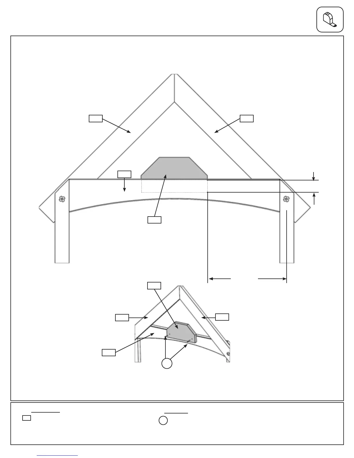 D: Place Roof Support Assembly on the ground with the front facing down then measure 12” from the centre of