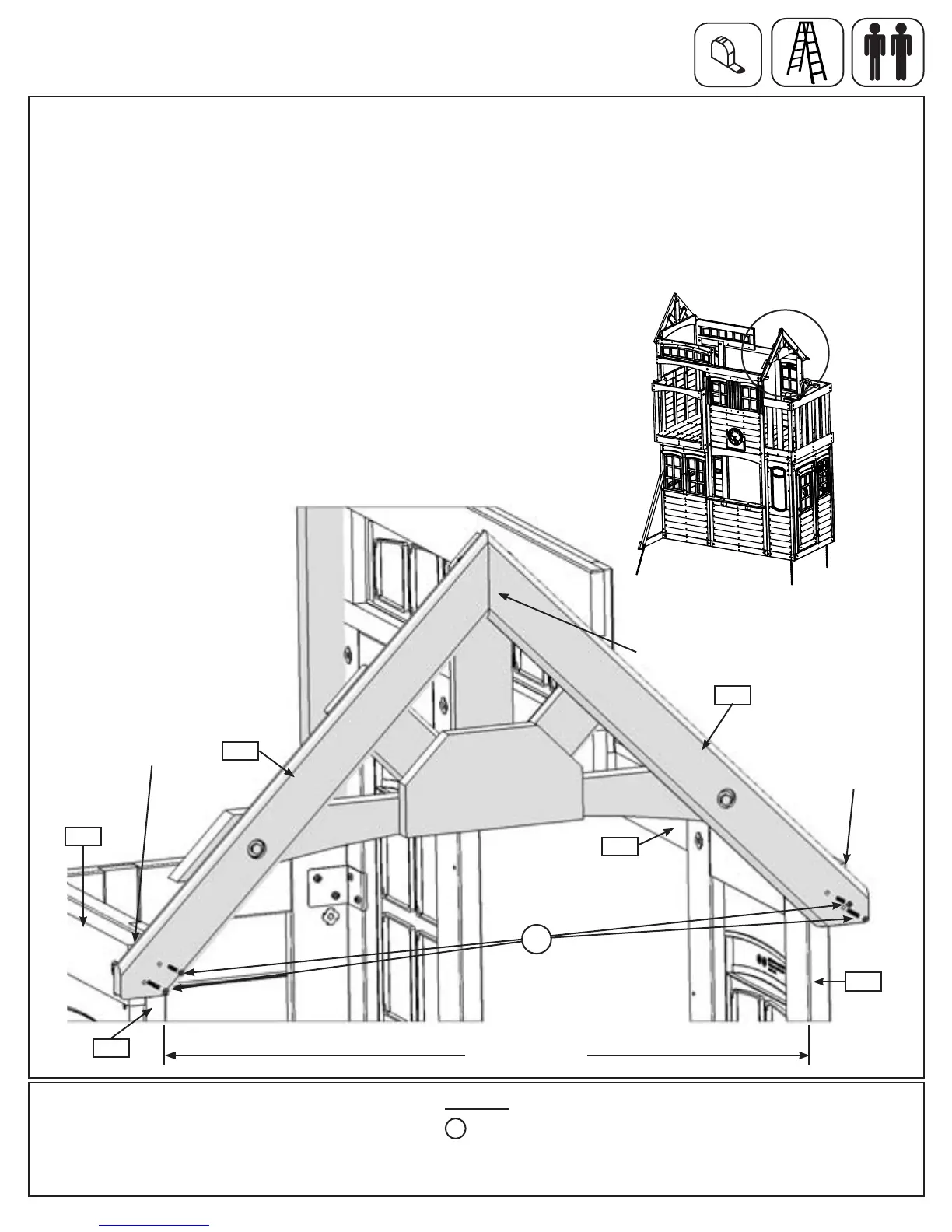 E: On the Door Wall Side, attach Gable Angle Support Assembly, from Step 19, Part 3, to the ends of (127) Front