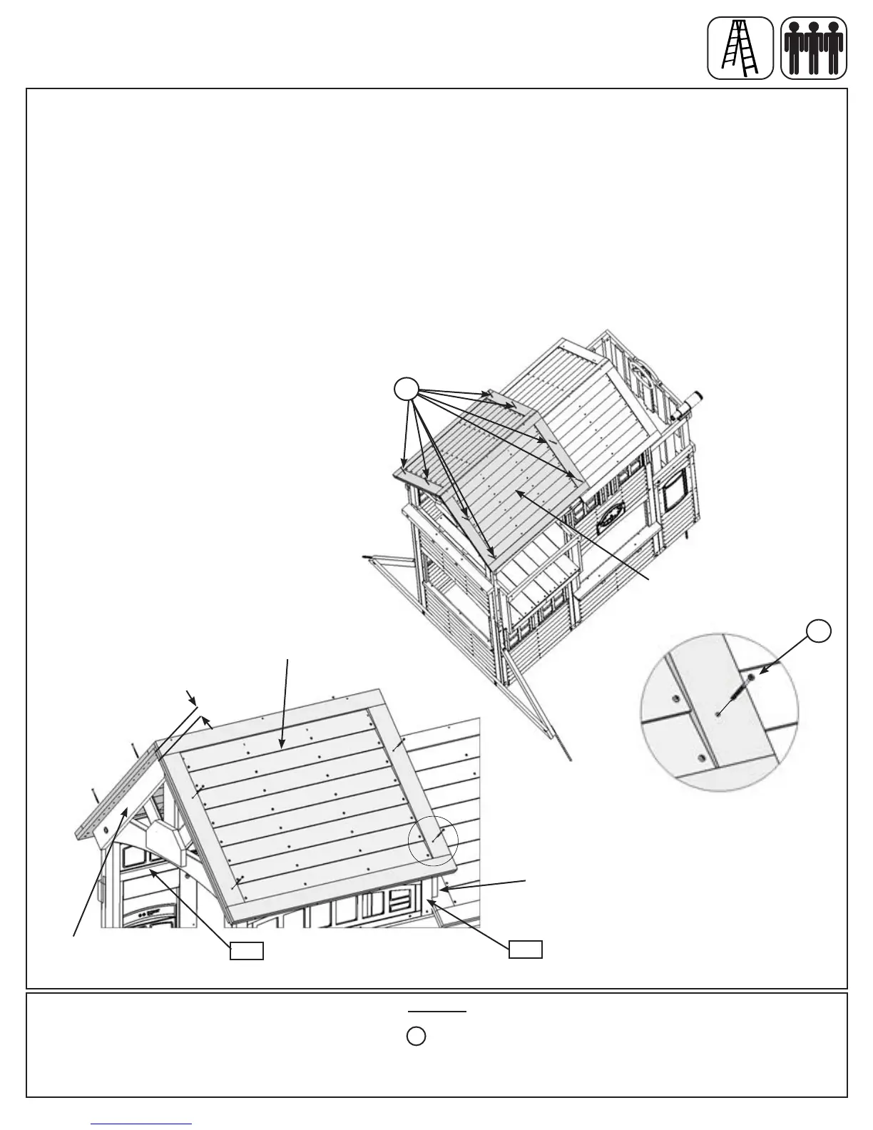 E: With 2 people on the ground and at least 1 person in the fort, lift the Large Roof Assembly, from Step 21,