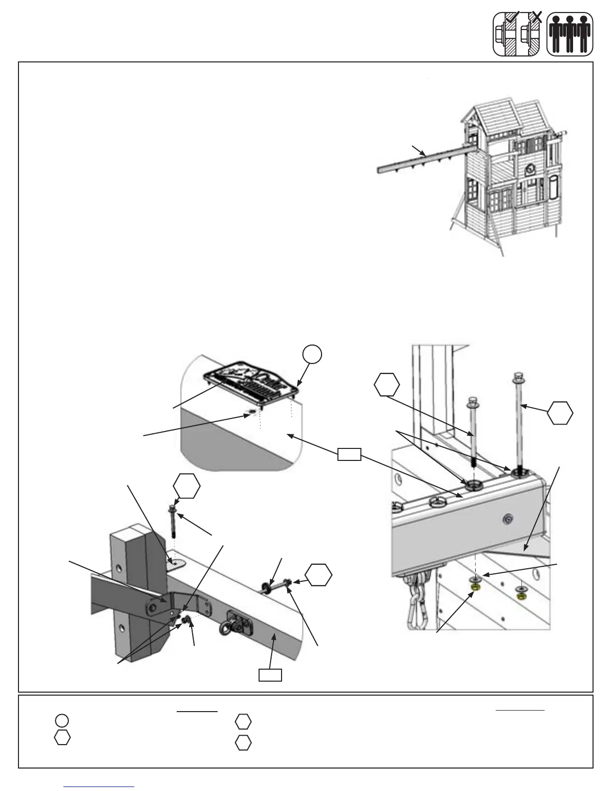 attach to fort with 1 (G17) 3/8 x 6” Hex Bolt (with 2 at washers,