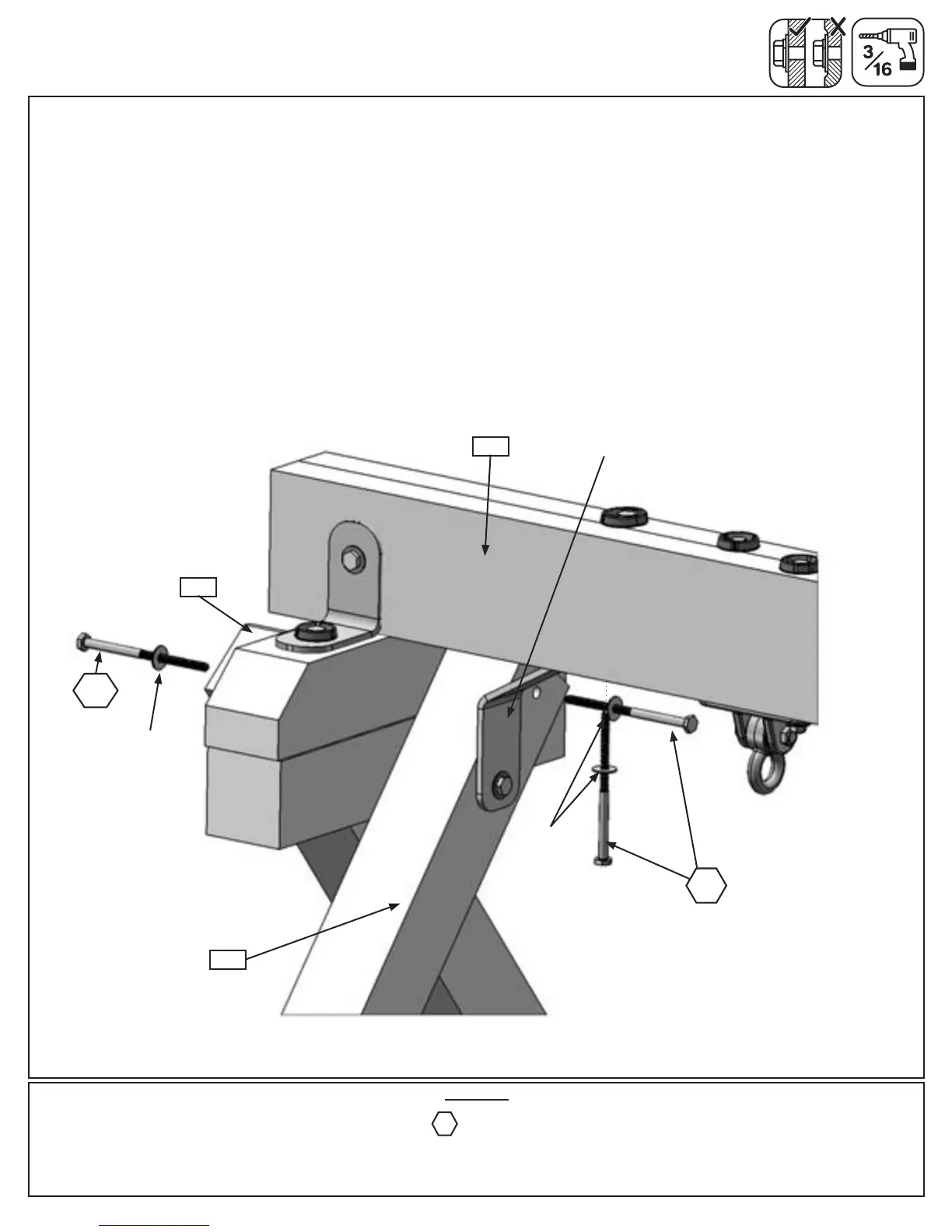 Note: Tighten all bolts from Step 27 series before installing lag screws.