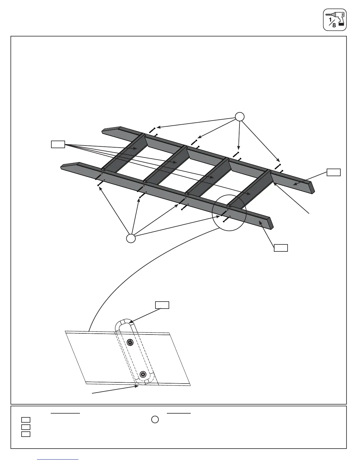 C: Pre-drill pilot holes with a 1/8” drill bit and attach rails and treads together using 4 (S3) #8 x 2-1/2” Wood