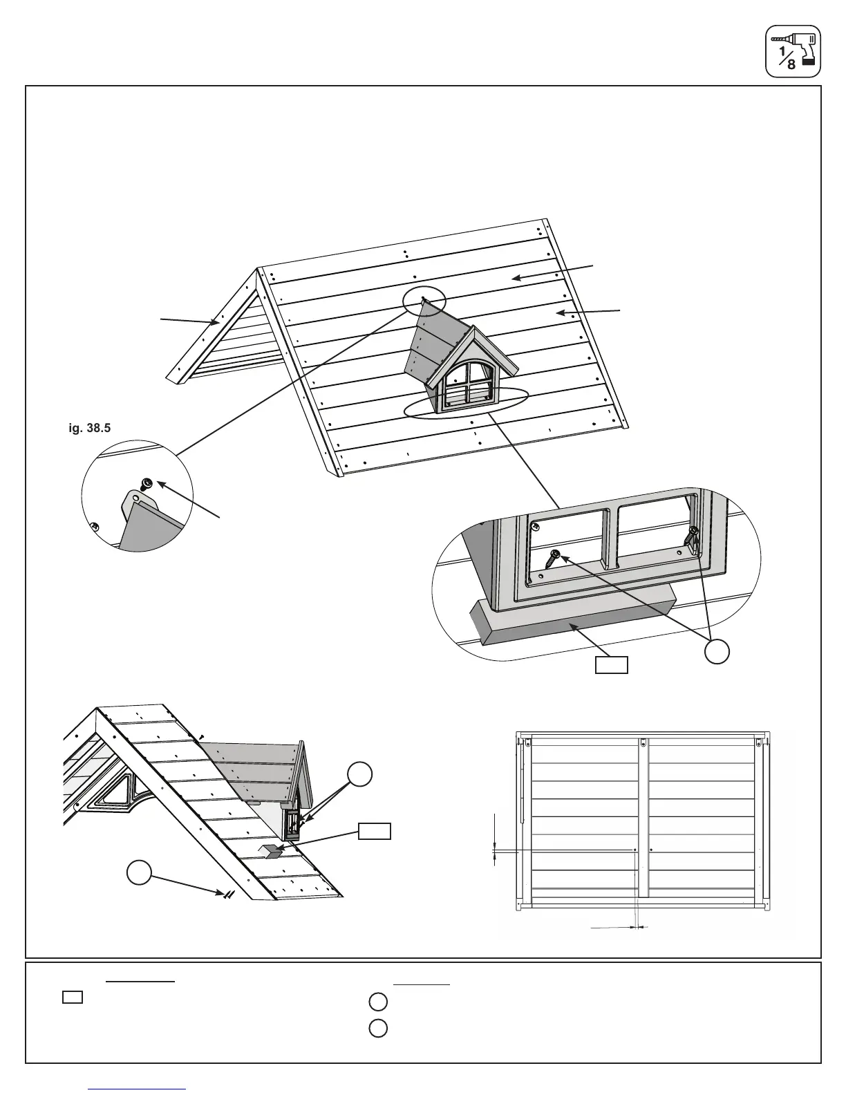 E: On the 8th slat remove the middle screw and set aside. Place Dormer Assembly over the (382) Dormer