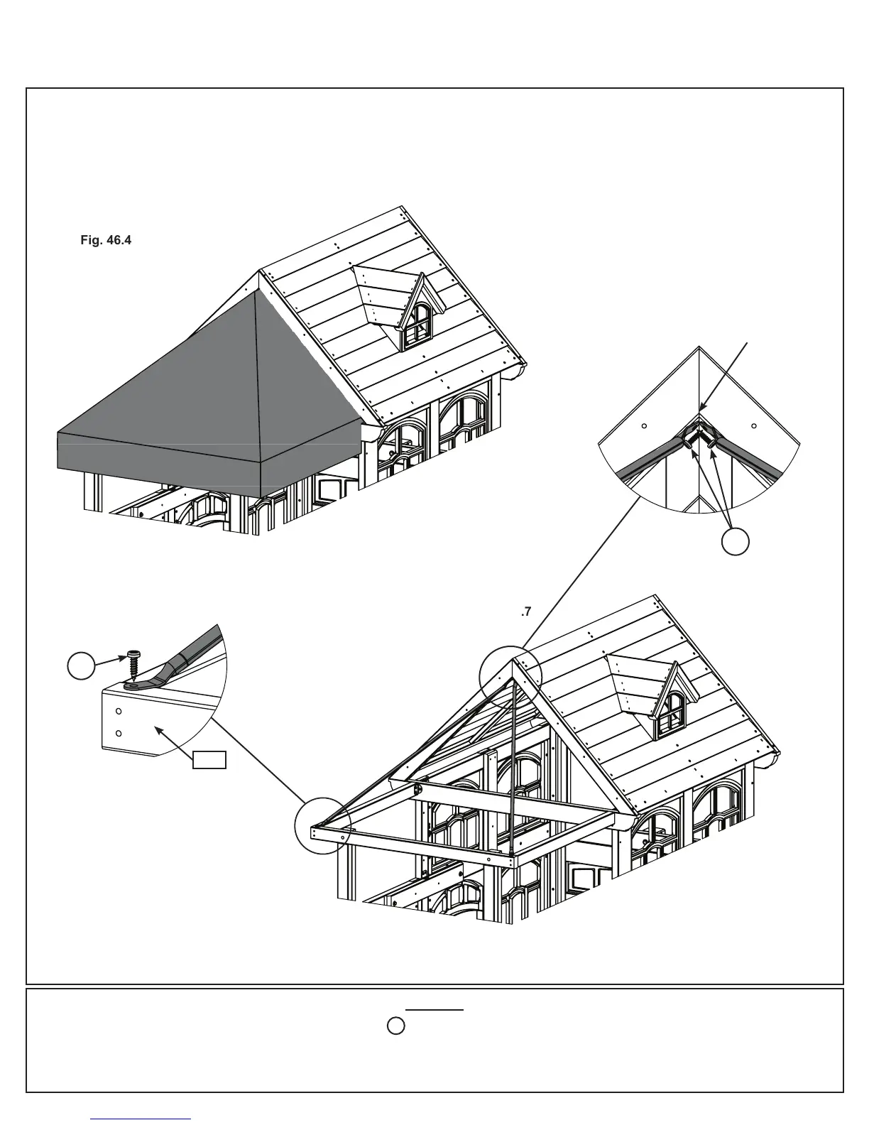 B: From inside the assembly attach the top two canopy rods to the roof peak using 1 (S6) #12 x1” Pan Screw