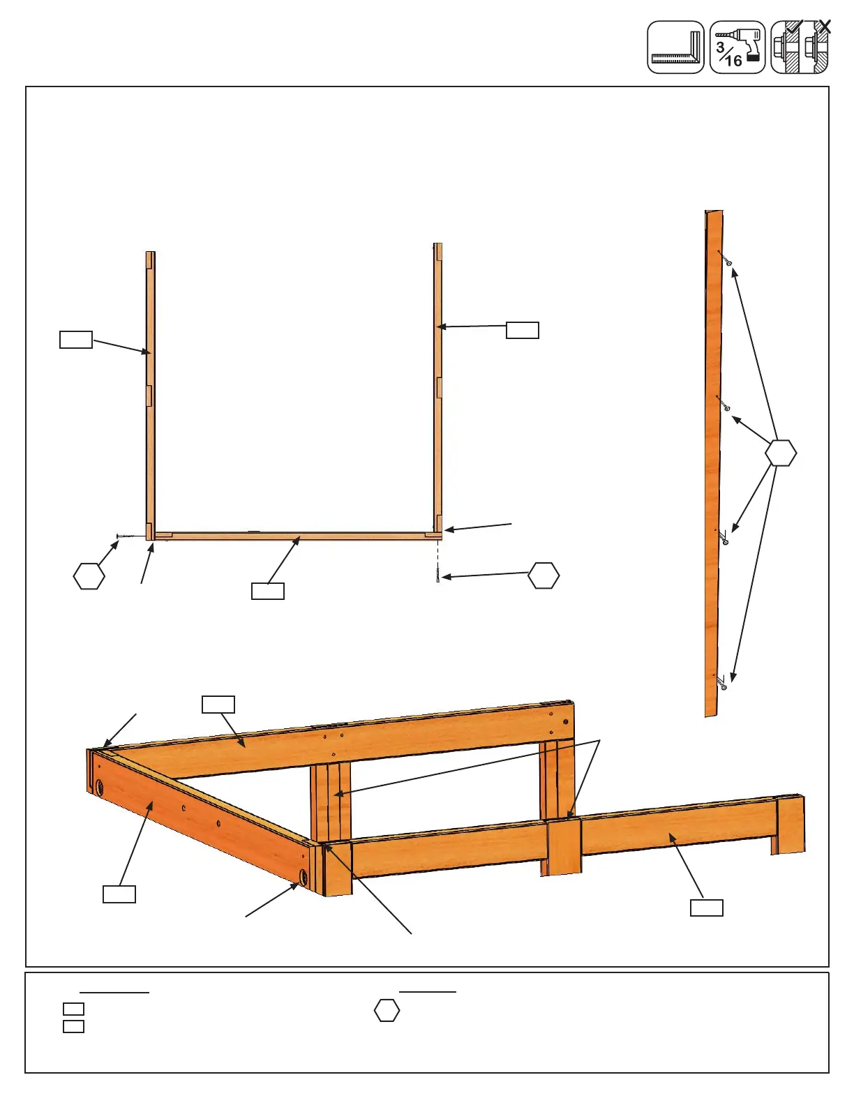 guide pre-drill with a 3/16” drill bit and fasten the front (2618) Front Back Panel to (2627) SW Wall Panel and