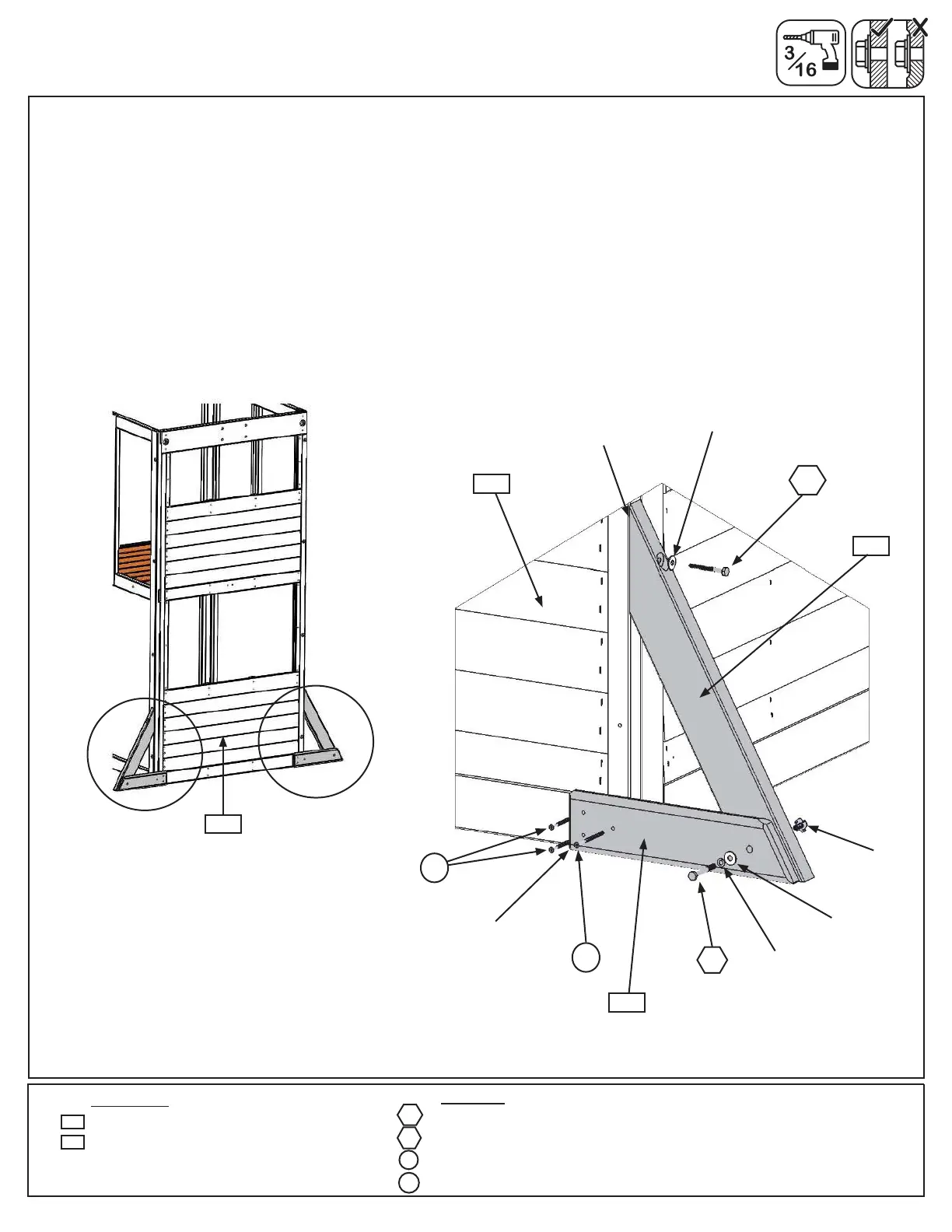B: Pre-drill pilot hole with a 3/16” drill bit then attach each (2607) Diagonal to (2627) SW Wall Panel with 1 (LS3)