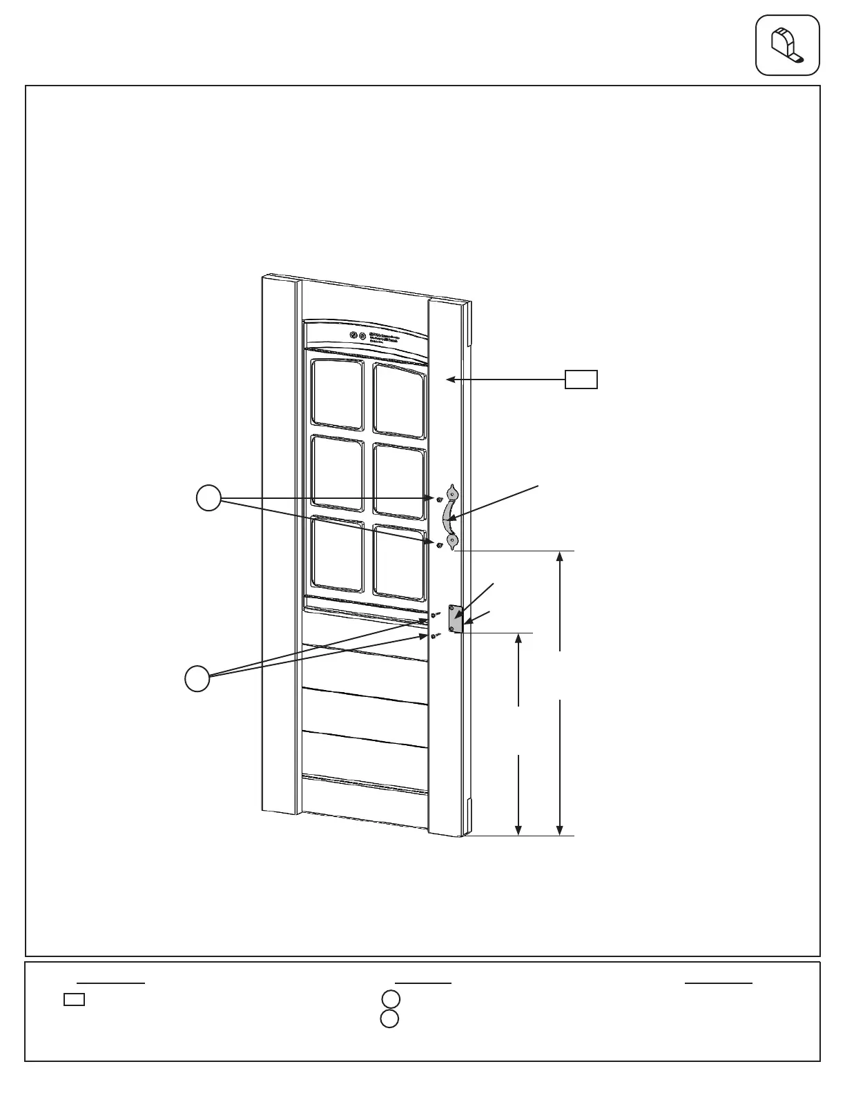 B: On the inside of (2718) Door Window Panel measure 22” up from the bottom and attach 1 Door Handle using