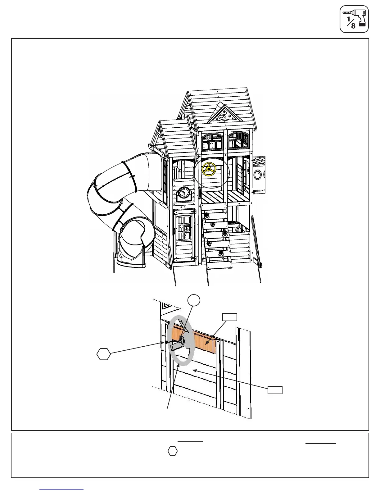 D: Place Steering Wheel on the inside of (2756) Siding Assembly then pre-drill with a 1/8” drill bit. Attach