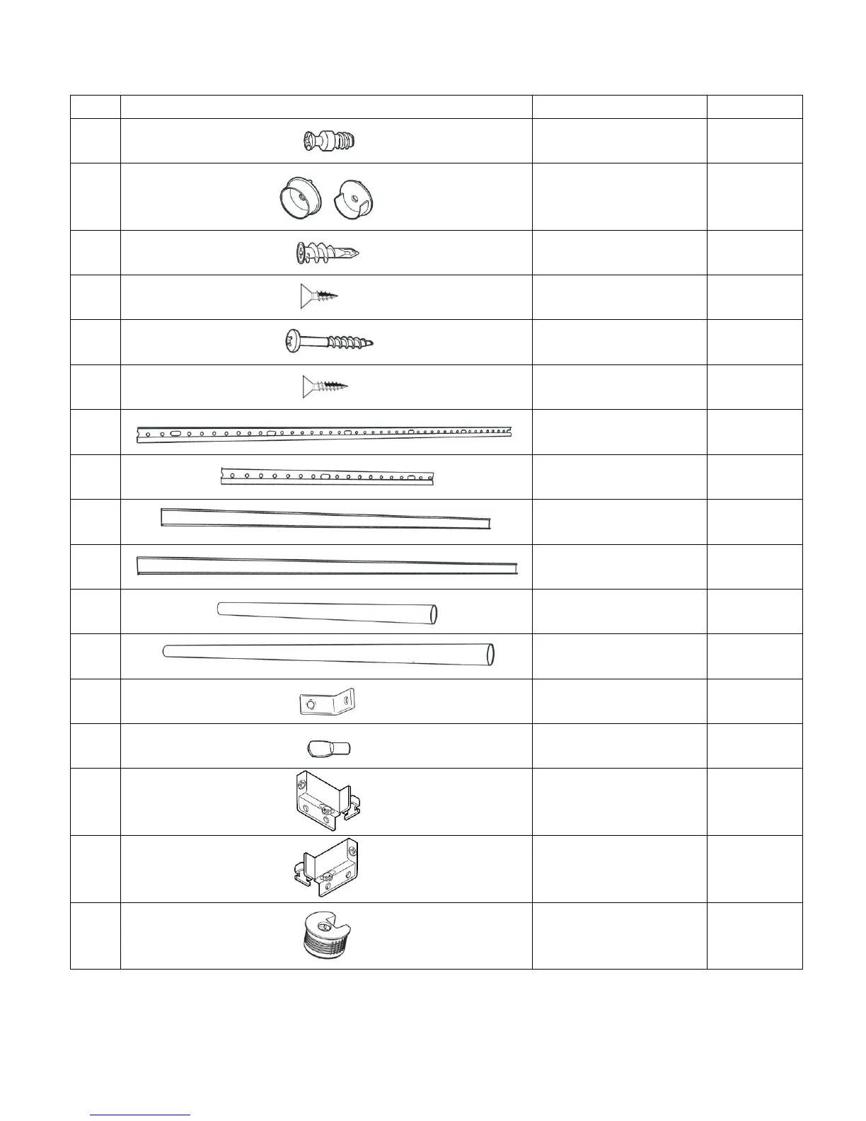 Cedar 801 - Hardware Identification Sheet; Rafix Connector Bolt; Wall Rail